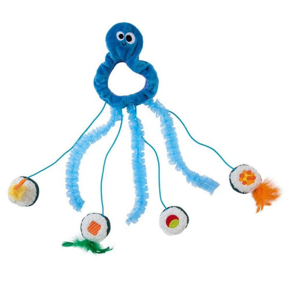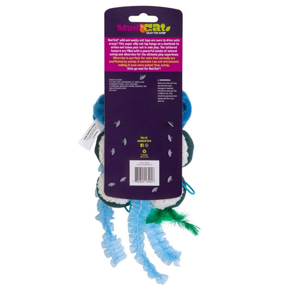 Mad Cat® Sushi doorknob toy™ includes four dangling sushi roll teaser toys to bat and chase! Hang on any doorknob for your cats to play and pounce. Tempting ribbons provide additional play materials. Bust boredom and keep your house cats entertained with this engaging catnip and silvervine doorknob toy!